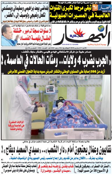 أعلنت وزارة الصحة، اليوم الخميس، عن ارتفاع عدد المصابين بفيروس كورونا إلى 4006، وارتفاع عدد الوفيات إلى 450. وتم تسجيل 158 حالة إصابة جديدة بفيروس كورونا، و6 وفيات خلال ال24 ساعة الأخيرة. كما تم تسجيل 77 حالة شفاء جديدة من فيروس كورونا، ليرتفع إجمالي من تماثلوا للشفاء إلى 1779. وتتوزع حالات الإصابة عبر ولايات الوطن كالتالي: البليدة: 799 الجزائر: 507 وهران: 243 سطيف: 197 عين الدفلى: 183 قسنطينة: 178 تيبازة: 140 بجاية: 128 تيزي وزو: 104 برج بوعريريج: 98 تلمسان: 94 تيارت: 76 أم البواقي: 70 ورقلة: 65 المدية: 63 مستغانم: 60 غرداية: 59 عنابة: 58 بسكرة: 56 الجلفة: 54 الشلف: 49 سيدي بلعباس: 48 سكيكدة: 48 معسكر: 48 بومرداس: 47 تيسمسيلت: 46 جيجل: 45 عين تموشنت: 43 بشار: 42 أدرار: 40 الوادي: 38 خنشلة: 34 باتنة: 34 غليزان: 31 تبسة: 30 الأغواط: 26 البويرة: 25 قالمة: 22 المسيلة: 22 الطارف: 16 سوق أهراس: 13 ميلة: 12 سعيدة: 4 البيض: 3 تمنراست: 3 نعامة: 3 إليزي: 2