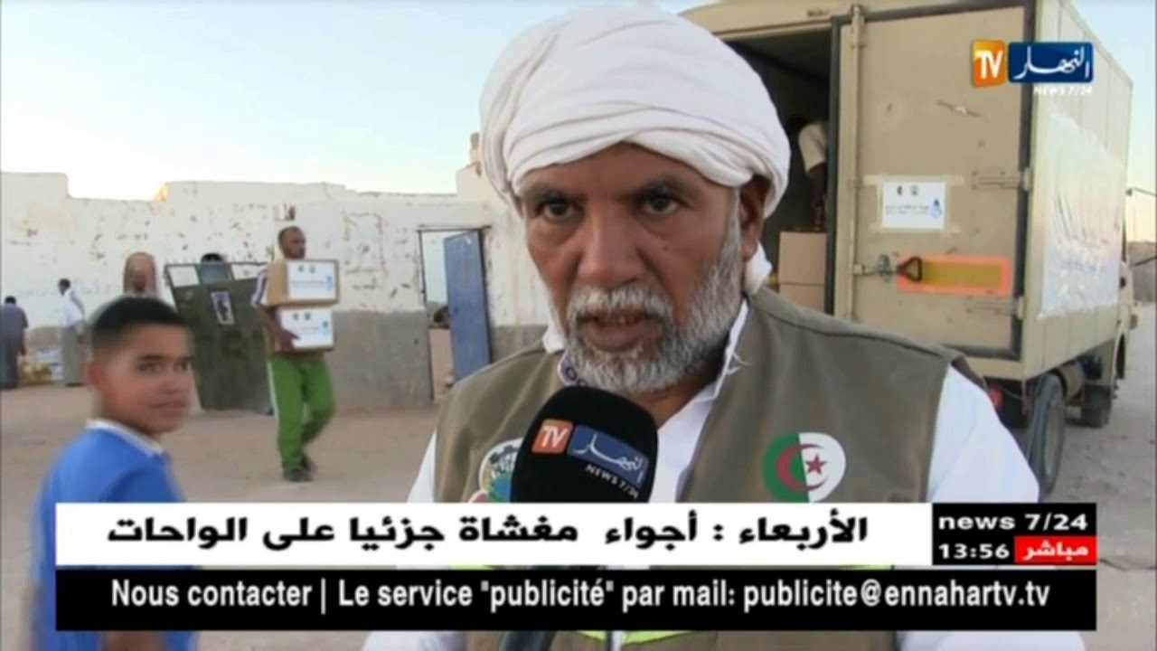 وصلت صباح اليوم الإثنين إلى مطار الرائد فراج بولاية تندوف طائرتان عسكرتان تابعتان للقوات الجوية الجزائرية محملة ب 60 طن من المساعدات. وكانت الطائرتين محملتين ب 60 طنا من المساعدات الإنسانية التي ستوزع لاحقا على الشعب الصحراوي بمخيمات اللاجئين. وتتضمن هذه المساعدات مختلف المواد الغذائية والمعدات الصيدلانية وتم شحنها من القاعدة الجوية لبوفاريك "البليدة" أمس الأحد. وكان في إستقبال هذه المساعدات السلطات المدنية والعسكرية باتجاه ولاية تندوف بالتعاون مع إطارات الهلال الأحمر الجزائري.